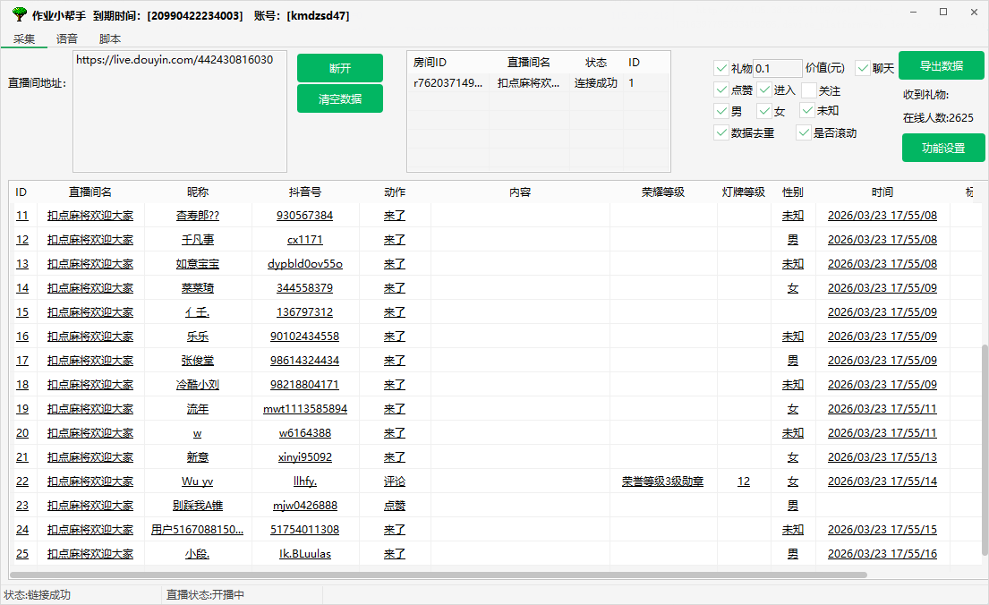 dy直播间公开采集软件---购买自动发下载地址---月卡