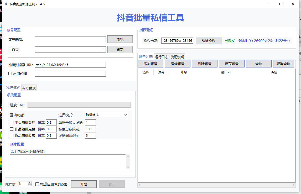 抖音自动私信工具--购买自动发下载地址和卡密----测试卡